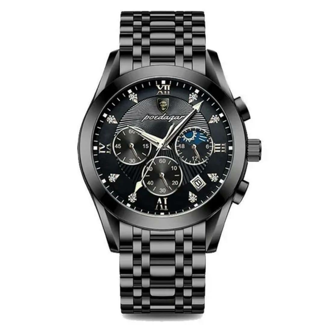 Découvrez cette montre chronographe masculine alliant style et fonctionnalité. Son design noir sophistiqué et son boîtier en acier inoxydable en font un choix parfait pour toutes les occasions. Dotée d'un affichage multifonction et d'un bracelet robuste, elle assure une allure impeccable et durable. Idéale pour les hommes modernes cherchant à allier élégance et précision.