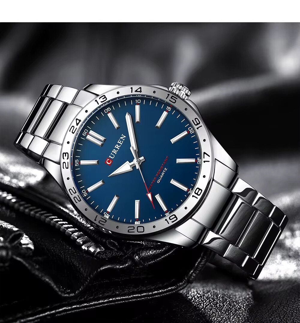 Découvrez la montre CURREN, alliant élégance et précision. Son design enchanteur avec cadran bleu et bracelet en acier inoxydable en fait un accessoire incontournable pour toutes les occasions. Idéale pour l'homme moderne recherchant style et fonctionnalité. Complétez votre tenue avec ce garde-temps raffiné, parfait pour le bureau ou les sorties. Choisissez le luxe accessible avec CURREN.