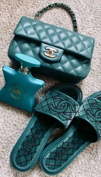 Mules Chanel en cuir vert