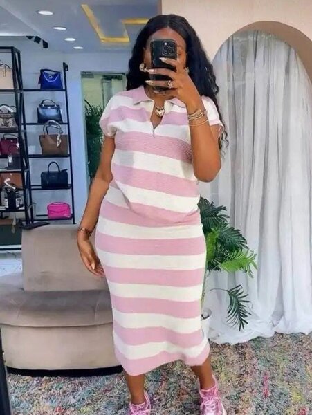 Robe mi-longue rayée rose pour femme