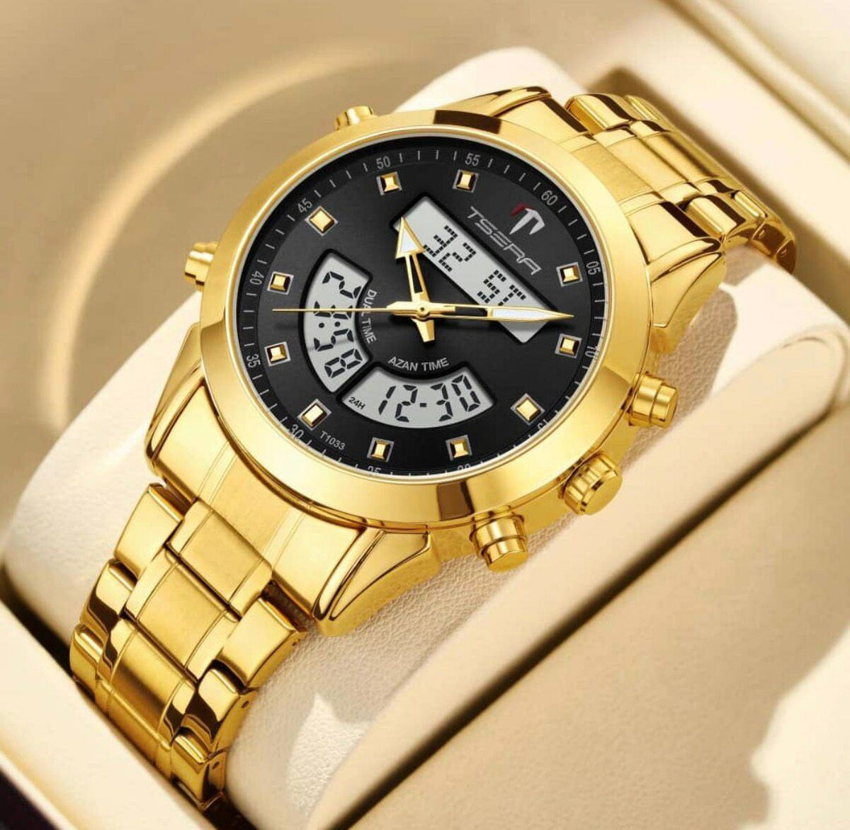Découvrez notre montre de luxe pour homme alliant l'élégance du design à la fonctionnalité moderne. Avec son affichage double — analogique et numérique —, elle offre précision et style. Parfaite pour les occasions formelles et décontractées, elle est un incontournable pour les amateurs de mode sophistiquée.