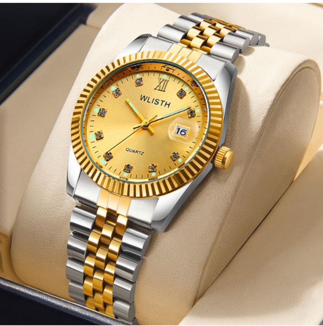 Montre élégante avec bracelet en acier inoxydable doré et argenté. Parfaite pour un look sophistiqué et moderne. Dotée d'un affichage de date pratique, cette montre est un excellent choix pour toutes les occasions, professionnelles ou décontractées. Quartz précis pour une ponctualité impeccable.