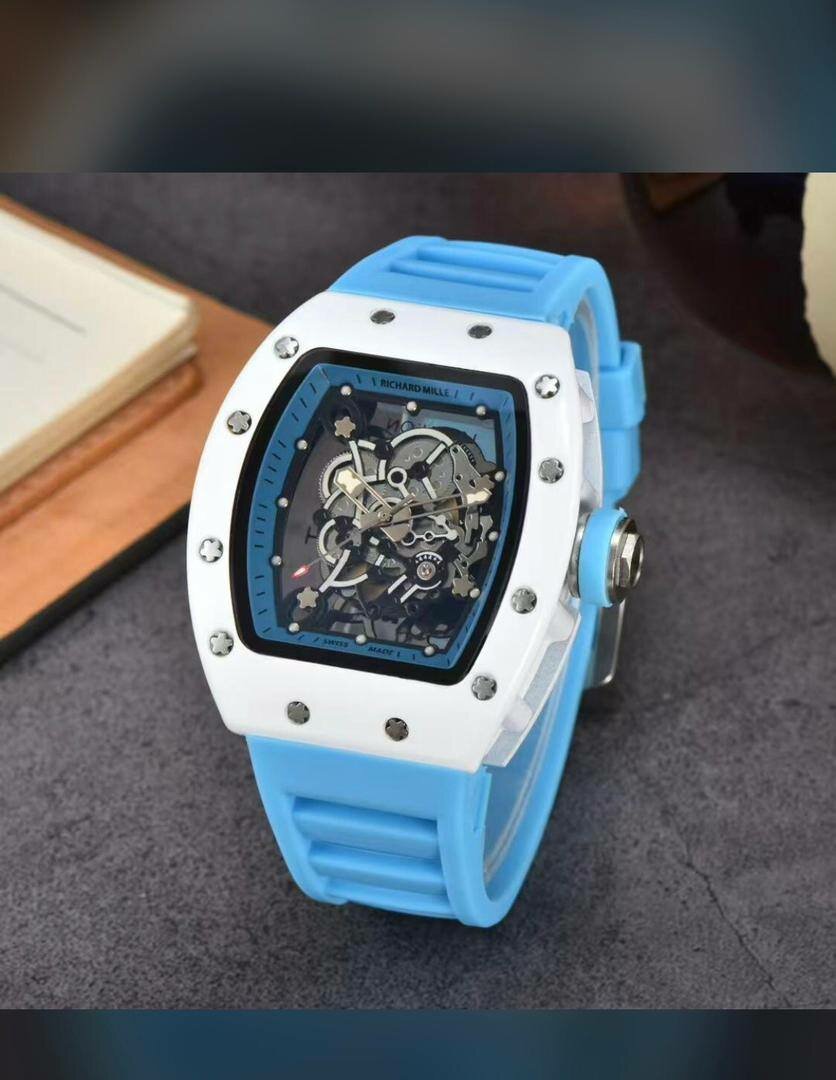 Découvrez cette montre homme luxe Richard Mille au design exceptionnel. Son cadran squelette révèle un mécanisme complexe et précis. Disponible en différentes couleurs de bracelet.