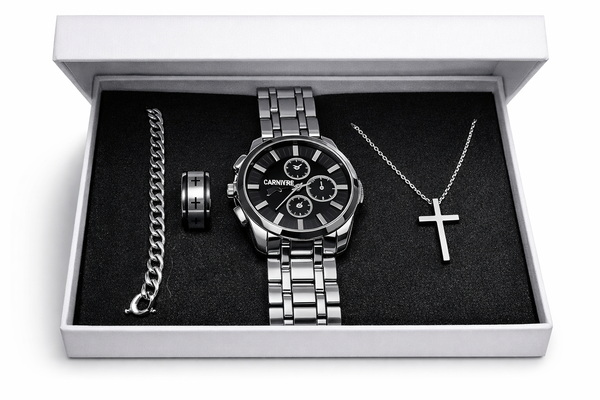 Montre Homme Luxe avec Bracelet et Collier Croix