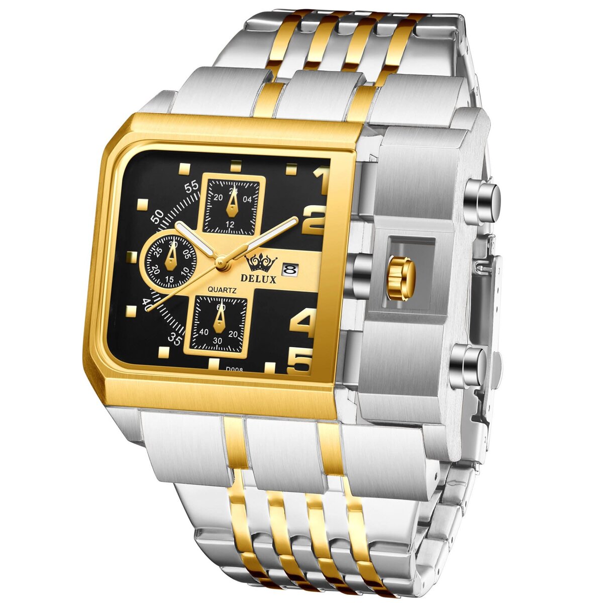 Découvrez l'élégance de cette montre pour homme en acier inoxydable. Dotée d'un cadran carré moderne, elle allie style et fonctionnalité grâce à son mouvement quartz précis. Parfait pour toutes les occasions, elle se distingue par son design raffiné avec détails dorés. Idéale pour l'homme moderne cherchant à marier sophistication et praticité.