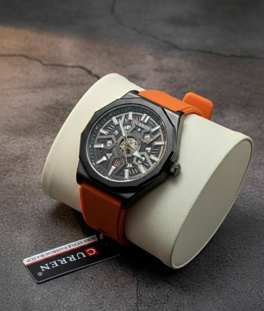 Découvrez l'élégance intemporelle avec cette montre squelette pour hommes. Dotée d'un bracelet orange vibrant, elle allie style contemporain et mécanisme visible captivant. Idéale pour les occasions formelles ou décontractées.