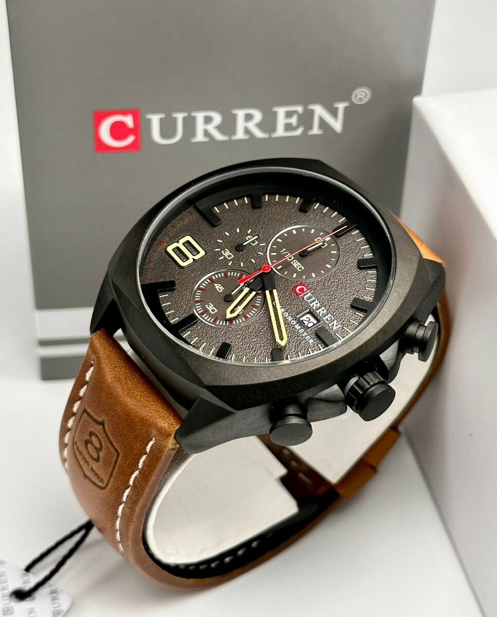 Montre Curren pour homme avec bracelet en cuir, étanche, quartz, grand cadran, Sport casual, avec date automatique et affichage lumineux