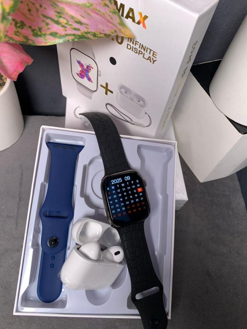 Cette montre intelligente et ces écouteurs sans fil offrent une expérience connectée ultime. La montre est équipée d'un écran tactile haute résolution, idéale pour suivre vos activités sportives et vos notifications. Les écouteurs sans fil offrent une qualité sonore exceptionnelle et une grande autonomie. Un ensemble parfait pour rester connecté et profiter de votre musique en toute liberté.