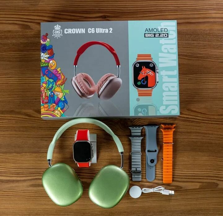 Découvrez la montre intelligente Crown C6 Ultra 2 avec écran AMOLED de 2,20 pouces. Parfaite pour suivre votre santé et vos notifications. Inclus plusieurs bracelets interchangeables et écouteurs pour une expérience complète. Idéale pour le fitness et le quotidien.