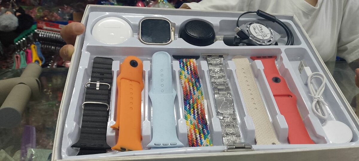 Découvrez la montre intelligente connectée D99 PLUS 8 en 1, un accessoire multifonctionnel qui combine un style élégant et des fonctionnalités avancées. Livré avec 7 bracelets et écouteurs bluetooth, baffe