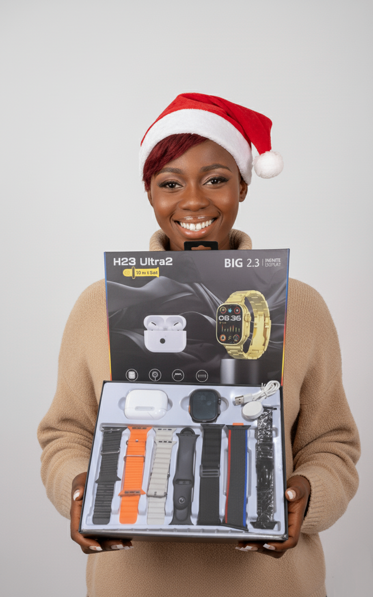 Découvrez la montre intelligente H23 Ultra2 avec écran 2.3" et multiples bracelets. Idéale pour suivre votre performance quotidienne avec style grâce à ses fonctionnalités avancées et personnalisables. Parfait cadeau de Noël pour garder vos proches connectés et actifs.