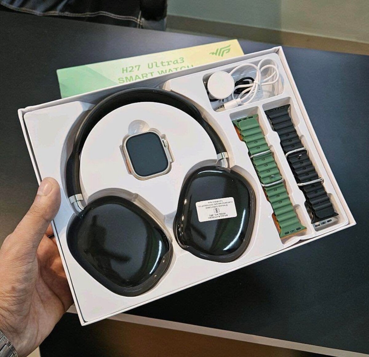 Découvrez la montre intelligente H27 Ultra3, équipée d'un écran tactile et compatible avec les casques Bluetooth. Multifonction, elle inclut des bracelets interchangeables et un casque audio pour une expérience complète. Idéale pour le sport et les notifications.