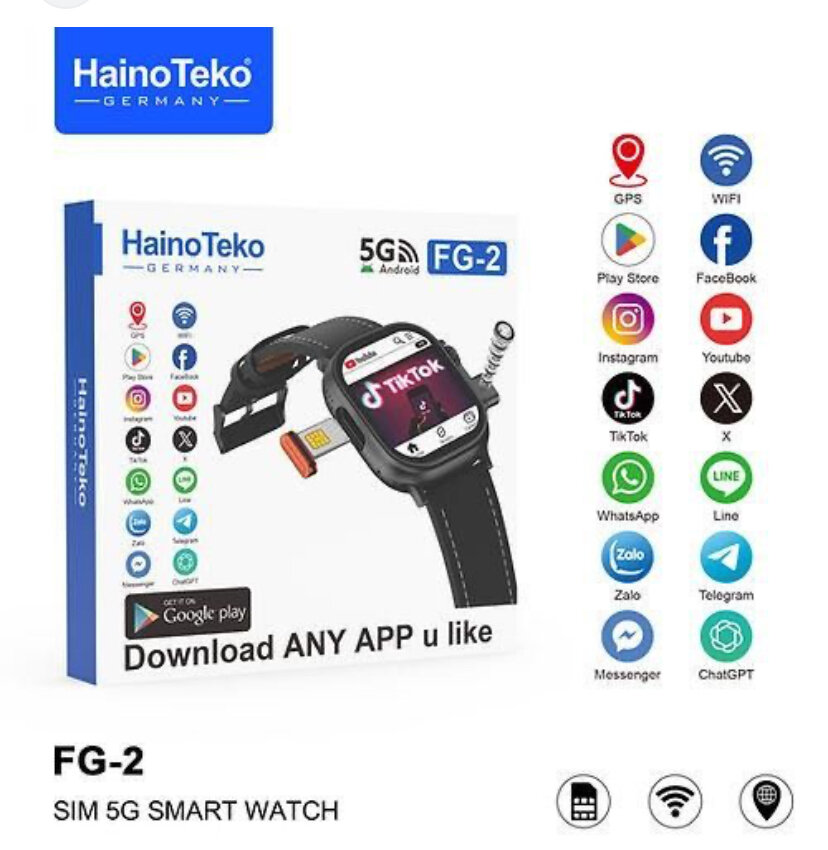 Découvrez la montre intelligente HainoTeko FG-2 avec connectivité 5G et système Android. Téléchargez vos applications préférées comme TikTok, WhatsApp, et plus encore. Idéale pour rester connecté et suivre votre activité.
