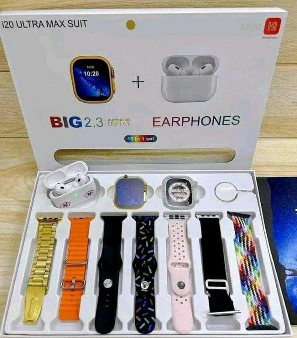 Découvrez l'ensemble ultime i20 Ultra Max : une montre intelligente avec écran 2.3 pouces et écouteurs sans fil. Idéal pour le sport et le quotidien. Changez de bracelet selon votre style !