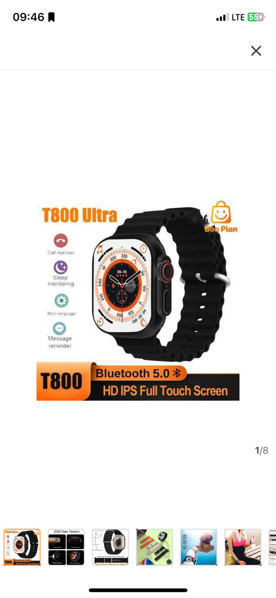 Découvrez la Montre Intelligente T800 Ultra avec écran tactile HD, Bluetooth 5.0 et plusieurs bracelets interchangeables. Idéale pour suivre vos activités sportives et rester connecté. Parfaite pour le quotidien et les amateurs de technologie. Améliorez votre style et votre productivité avec cette montre élégante.