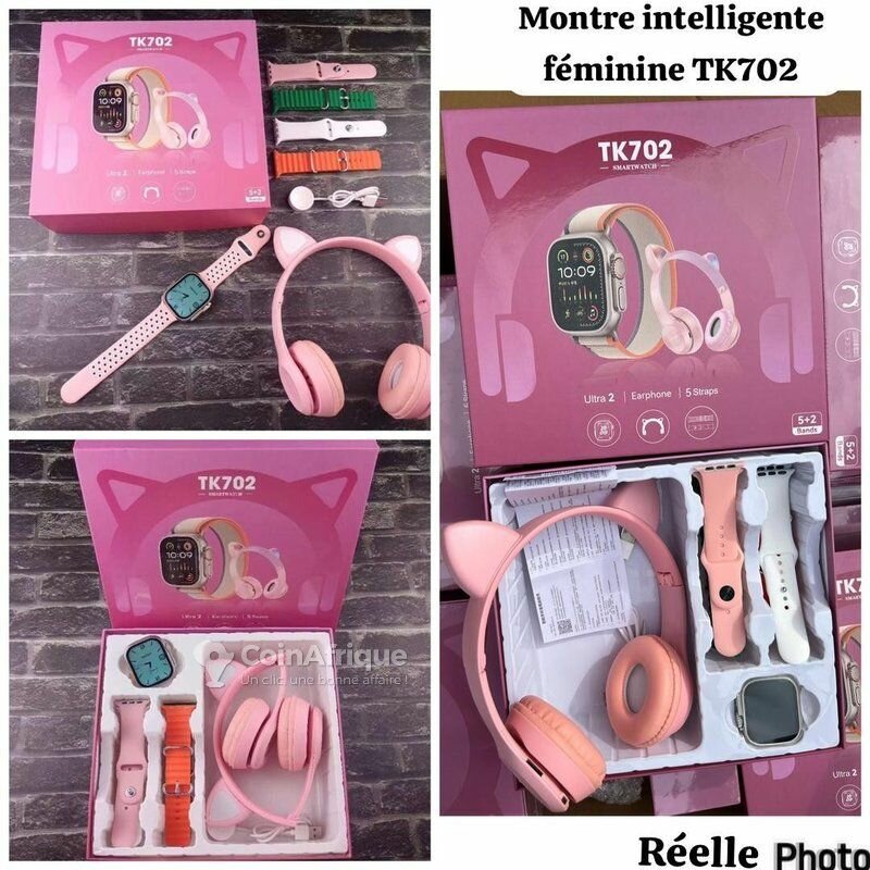 Découvrez la montre intelligente TK702 rose, élégante et multifonctionnelle. Avec son design féminin et ses divers bracelets interchangeables, elle s'adapte à toutes vos tenues. Connectez vos écouteurs pour un style complet et pratique. Parfaite pour suivre votre activité quotidienne et rester connectée à tout moment.