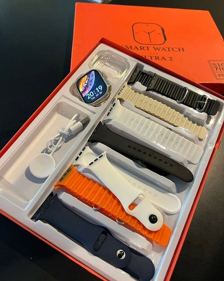 Découvrez la Montre Intelligente Ultra 2 avec plusieurs bracelets interchangeables. Parfaite pour le sport et le quotidien, elle offre des fonctions avancées, incluant suivi de la santé, notifications et écran haute résolution. Polyvalente et élégante, elle s'adapte à tous les styles. Idéale pour un usage quotidien, au bureau ou en salle de sport.