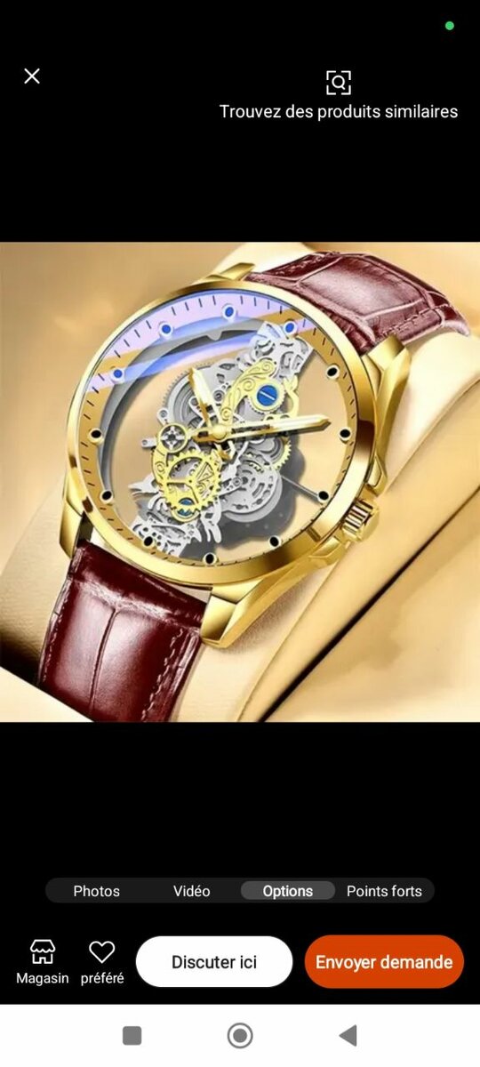 Élégante montre mécanique squelette pour hommes, mettant en valeur son mouvement exposé. Disponible avec bracelet en cuir ou en acier inoxydable doré, elle allie style et fonctionnalité. Parfaite pour les occasions formelles ou un usage quotidien, elle attire tous les regards tout en assurant une précision fiable. Idéale pour affirmer votre style.