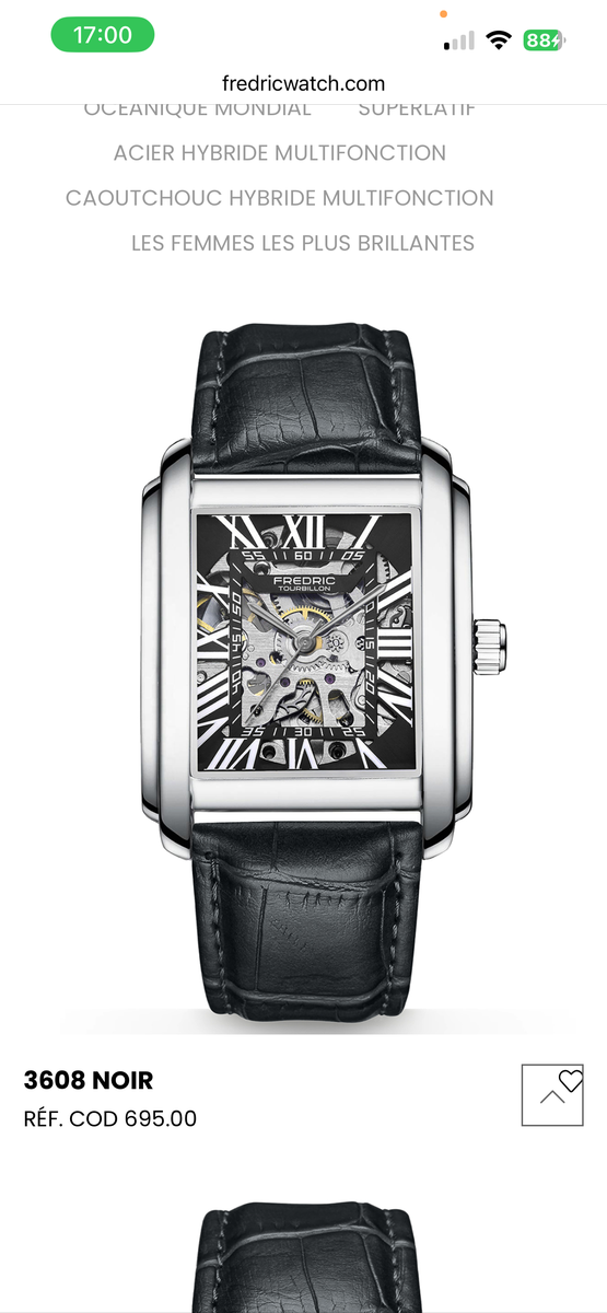 Découvrez l'élégance de la montre Tourbillon mécanique de Fredric. Avec son design sophistiqué et son bracelet en cuir de haute qualité, elle est parfaite pour les occasions spéciales. Inspiré de modèles iconiques, le boîtier carré façon Cartier Santos, squelette visible, chiffres romains offre un visuel exceptionnel. Son mécanisme automatique vous garantit précision et style intemporel. Offrez-vous le luxe ultime et démarquez-vous avec cette pièce exceptionnelle.