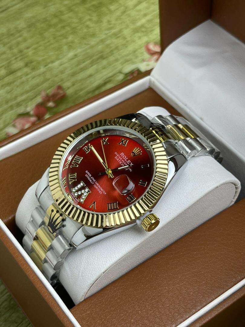 Découvrez cette montre Rolex pour homme, alliant élégance et précision. Fabriquée en acier inoxydable avec un cadran noir ou rouge et des accents dorés, elle est parfaite pour les occasions spéciales ou le quotidien. Conçue pour durer, elle offre un style intemporel et raffiné.