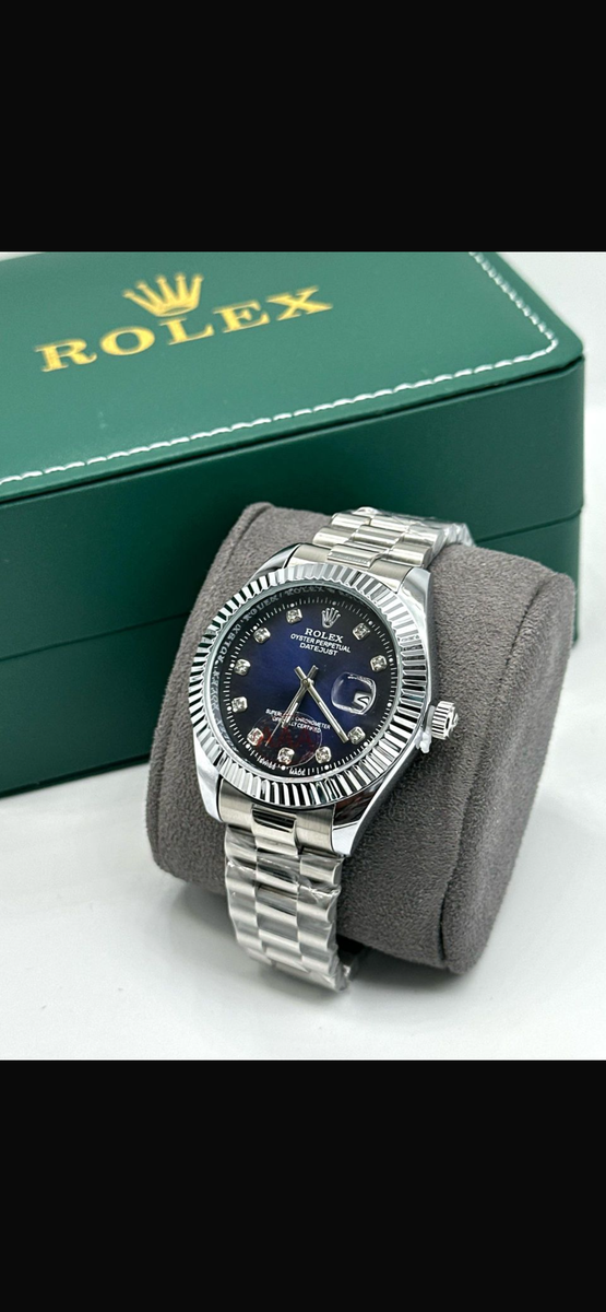 Découvrez cette montre Rolex pour homme, élégante et robuste, avec un cadran bleu et un bracelet en acier inoxydable. Un accessoire de luxe idéal pour les occasions spéciales.