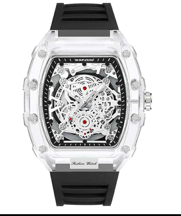 Découvrez cette montre squelette au design unique, parfaite pour les amateurs de style. Avec un bracelet noir et un cadran transparent, elle allie sophistication et modernité. Idéale pour toutes les occasions.