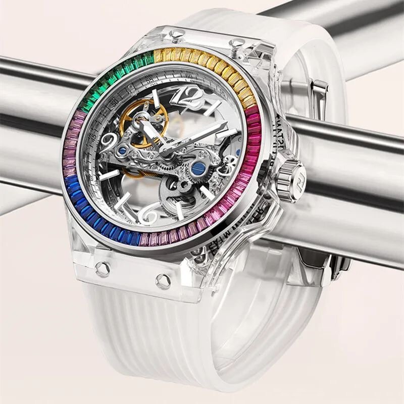 Découvrez la montre squelette sophistiquée, parfaite pour les amateurs d'horlogerie contemporaine. Avec son design transparent et son verre de haute qualité, elle offre un aperçu fascinant du mécanisme interne. Idéale pour ajouter une touche de luxe à toute tenue, cette montre innovante est équipée d'un bracelet confortable et tendance. Parfait accessoire pour les occasions spéciales ou un usage quotidien.