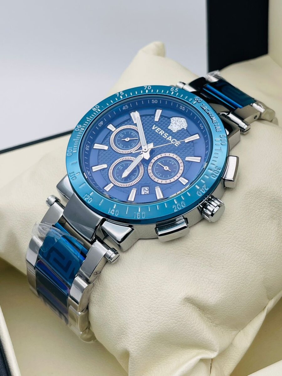 Découvrez l'élégance de la montre chronographe Versace pour hommes. Avec un bracelet en acier inoxydable et un cadran bleu captivant, cet accessoire chic est parfait pour les occasions formelles et décontractées. Idéale pour les hommes qui apprécient le luxe et la précision.