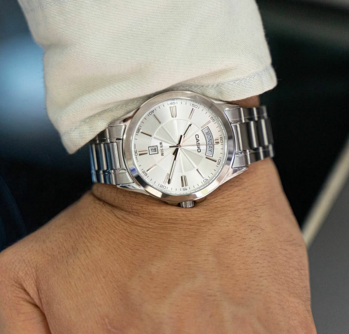 Élégante montre-bracelet en acier inoxydable pour homme, équipée d’un affichage de la date. Idéale pour les occasions formelles et le quotidien, elle combine style et fonctionnalité.