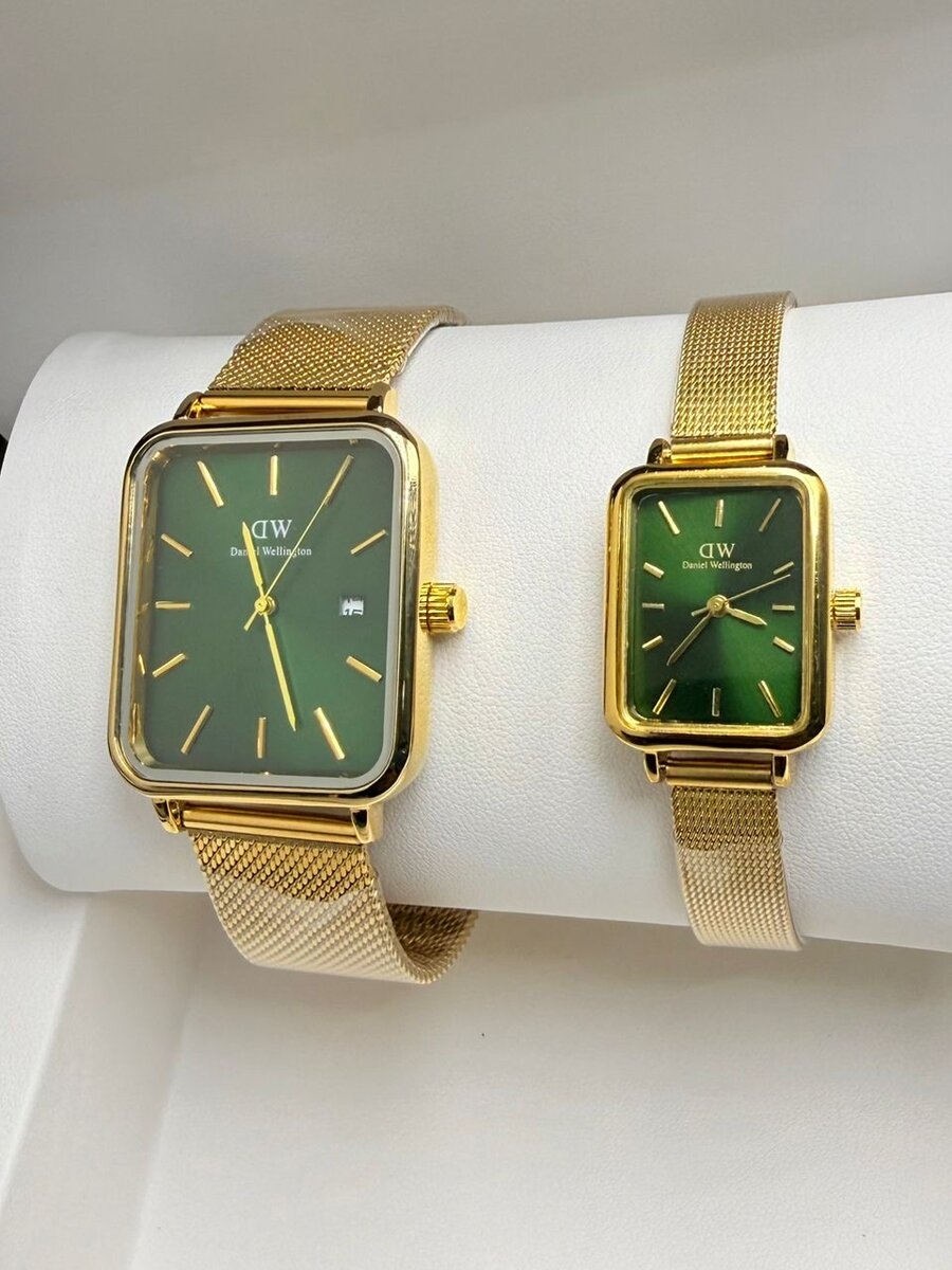 Découvrez notre ensemble de montres élégantes pour couples, un choix parfait pour les amateurs de style. Dotées d'un cadran carré vert et de bracelets en maille dorée, ces montres offrent une touche de sophistication à toute tenue. Idéal pour les événements spéciaux ou un usage quotidien.