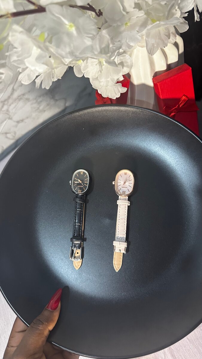 Découvrez notre collection de montres élégantes pour femmes, parfaites pour toute occasion. Fabriquées avec un bracelet en cuir durable, ces montres offrent un design classique et raffiné. Choisissez entre le style noir intemporel ou l'élégance chic du blanc pour compléter votre tenue. Idéales pour un usage quotidien ou pour offrir en cadeau.