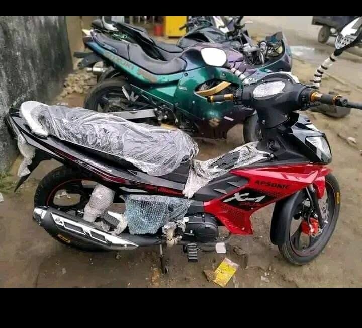 Découvrez cette moto RS100 rouge et noir, idéale pour les déplacements urbains. Conçue pour la performance et la maniabilité.