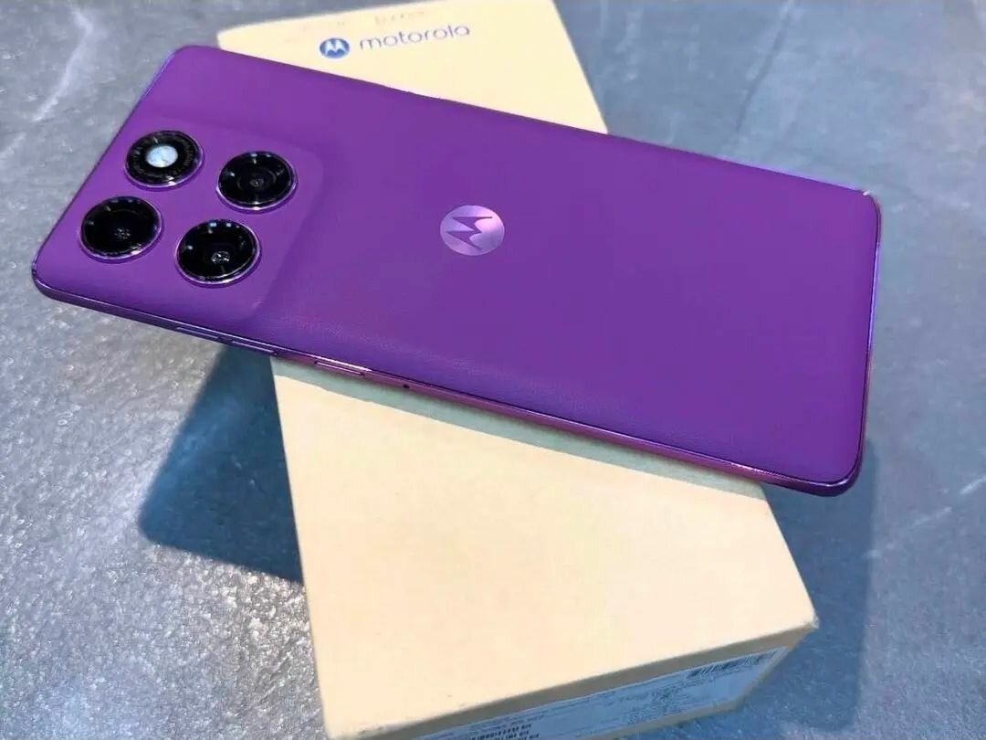 Découvrez le smartphone Motorola violet, équipé de quatre caméras et d'un design élégant. Idéal pour les amateurs de technologie et de style.