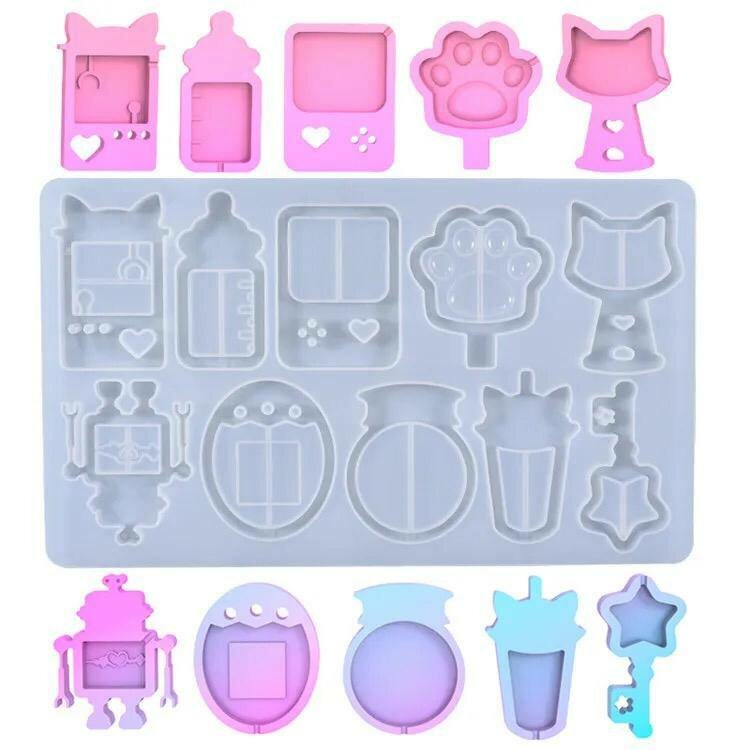 Moule en Silicone sur le thème "Mignon et Fantaisie" pour Porte-clés et Charms en Résine.