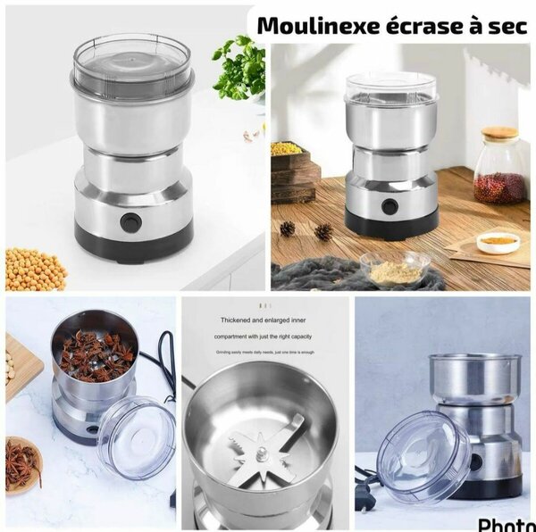 Découvrez notre moulin à épices électrique robuste, parfait pour moudre café et épices en un clin d'œil. Compact et facile à utiliser, il est idéal pour les amateurs de cuisine. Design en acier inoxydable élégant et longue durée de vie.