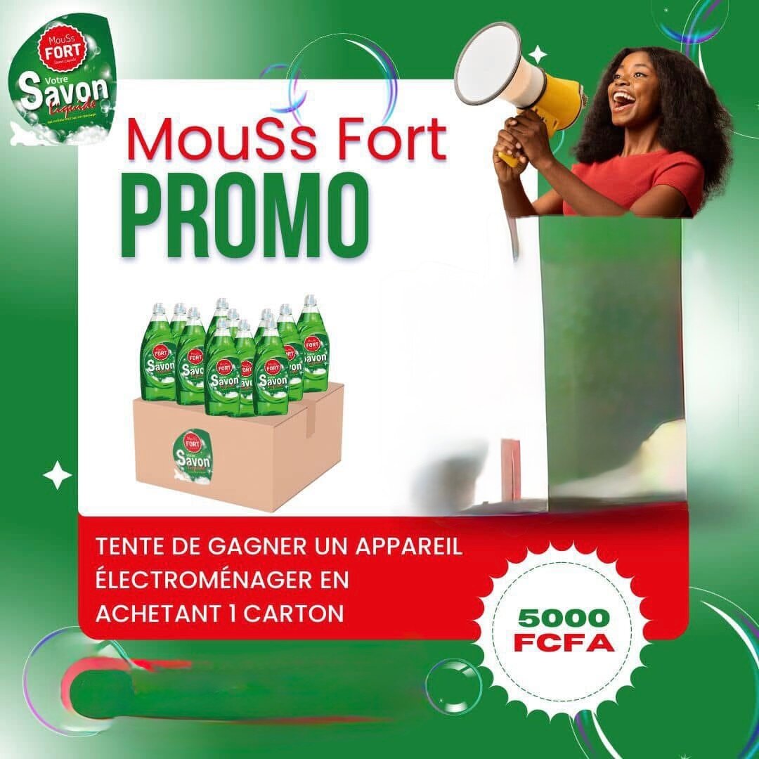 le savon liquide Mouss Fort, idéal pour une vaisselle impeccable. Parfait pour une utilisation quotidienne pour rendre clean vos espaces et vêtements . Un carton Achetez maintenant et tentez de gagner des appareils électroménagers!