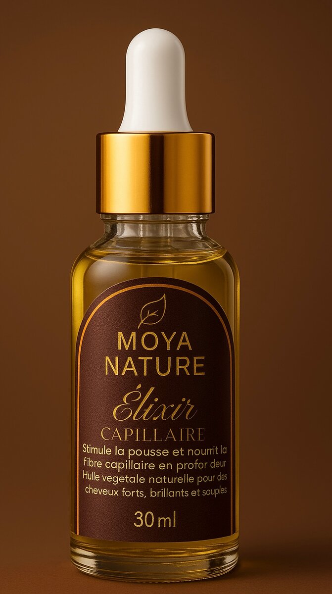 Découvrez le pouvoir de l'élixir capillaire Moya Nature, conçu pour nourrir intensément et renforcer vos cheveux. Cette huile végétale naturelle stimule la pousse et rend vos cheveux brillants, forts et souples. Idéal pour ceux qui cherchent une solution efficace pour améliorer la santé capillaire au quotidien.