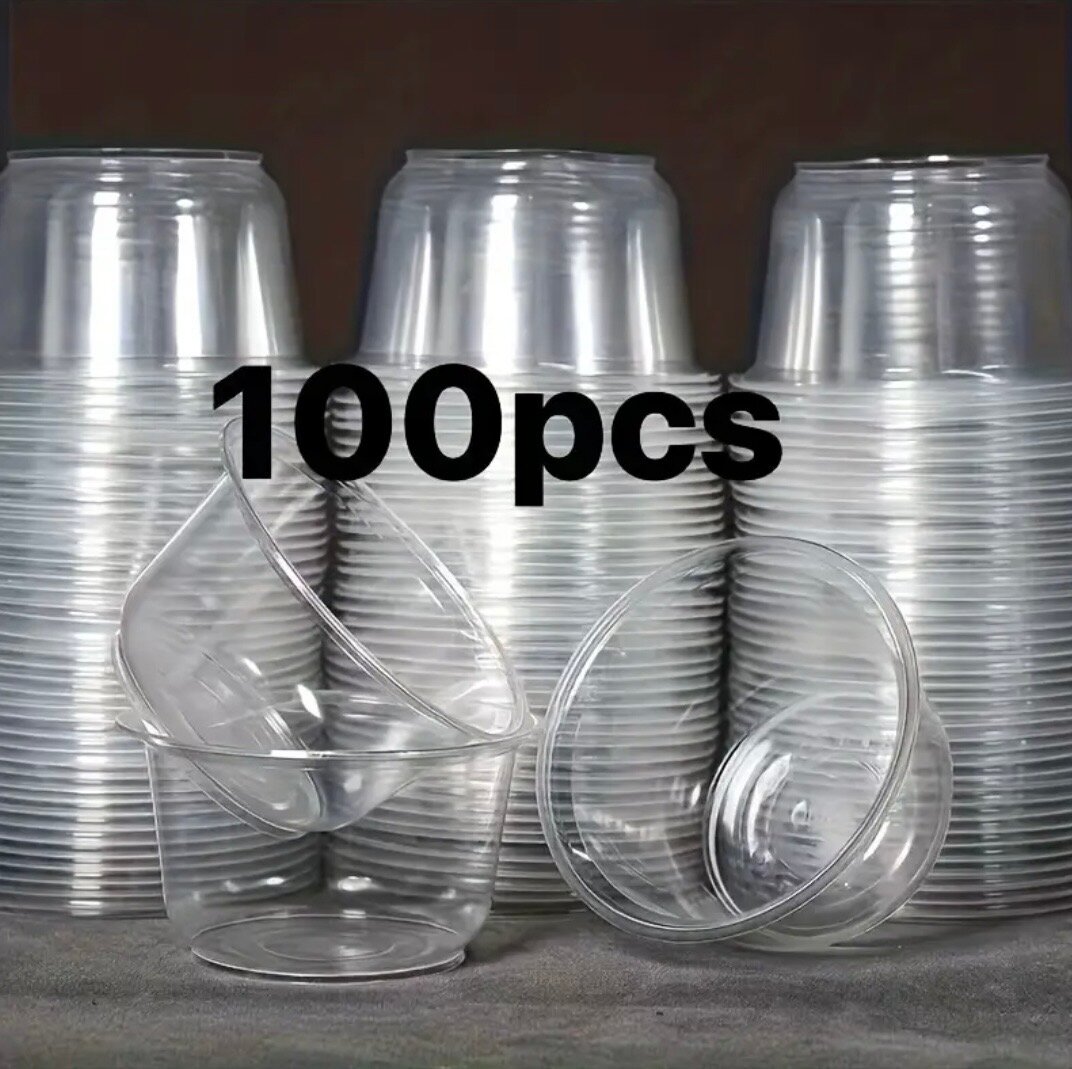Lot de 100 bols en plastique transparent, parfaits pour les fêtes, événements ou usage quotidien. Robustes et réutilisables, idéals pour servir des salades, desserts ou collations.
