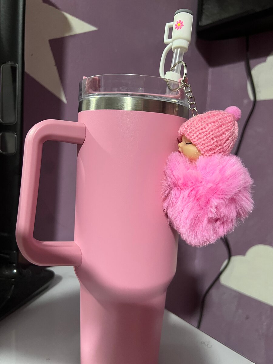 Mug isotherme rose avec porte-clés
