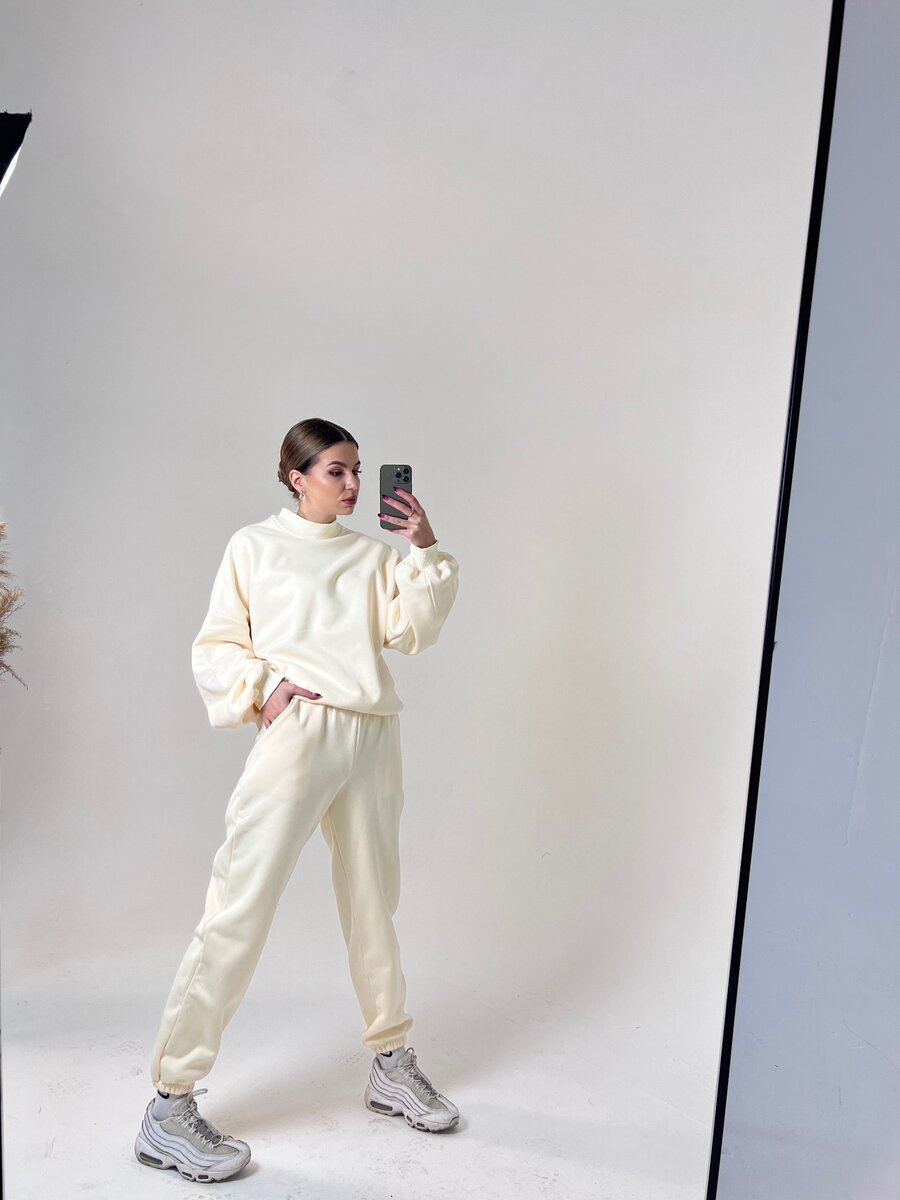 Стильный трикотажный костюм - это идеальный вариант превосходного качества для повседневного ношения, прогулок, а также для работы в офисе. Оверсайз посадка костюма позволяет скрыть все недостатки фигуры, а благодаря свободному крою он идеально подходит для беременных и для ношения после рождения ребенка.