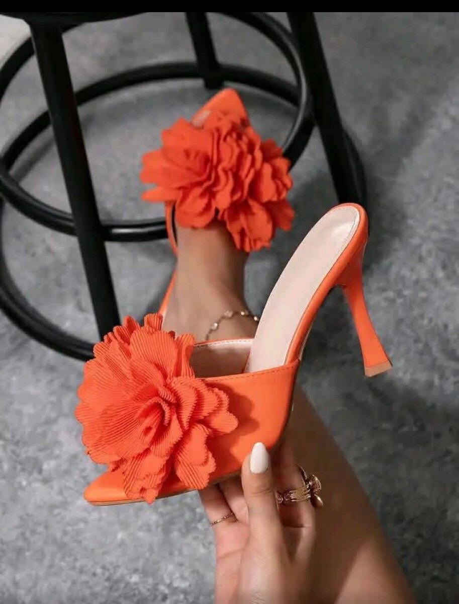 Mules à talons floraux orange