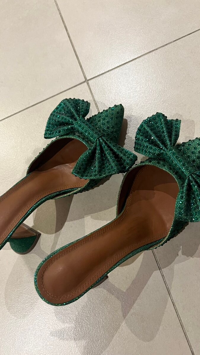 Entrez dans l'élégance avec ces superbes mules à talons en strass vert. Avec un accent de nœud chic, ces chaussures sont parfaites pour ajouter une touche de glamour à n'importe quelle tenue. Idéal pour les fêtes, les événements spéciaux ou une soirée. Confortables et élégants, ils sont un ajout indispensable à votre collection de chaussures.