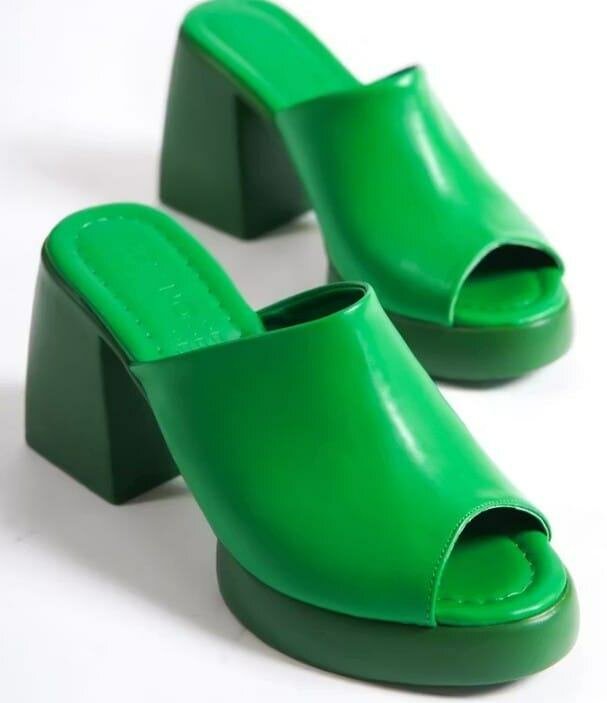 Ajoutez une touche d'audace à votre garde-robe avec ces mules à talons hauts verts. Confortables, stylées et parfaites pour toutes vos sorties estivales.