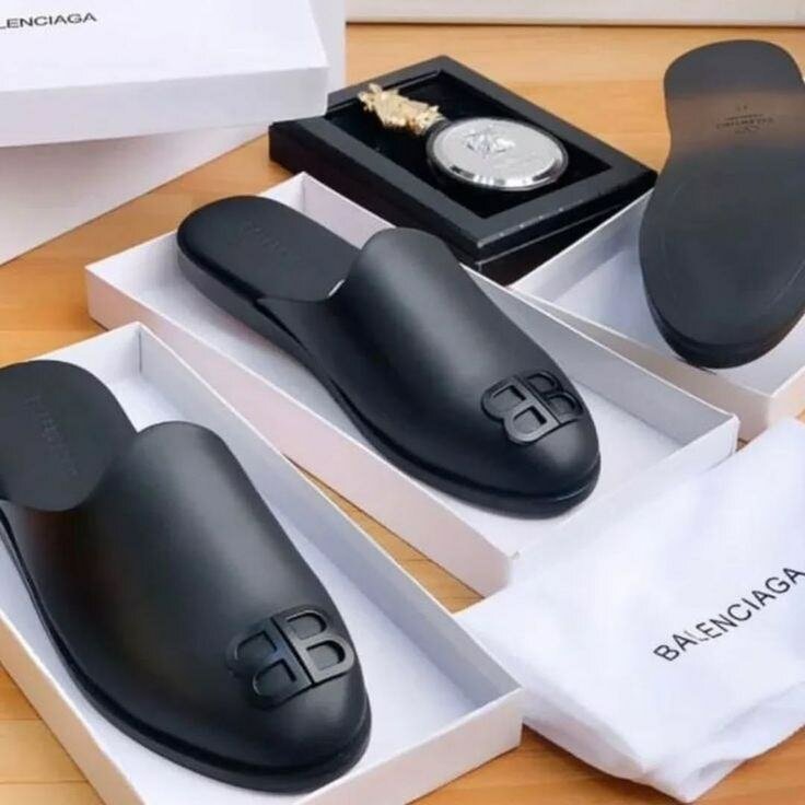 Découvrez l'élégance ultime avec ces mules en cuir noir, embelli par des détails en métal distinctifs. Parfaites pour une touche de raffinement dans votre tenue quotidienne. Idéales pour les occasions formelles ou comme cadeau luxueux pour homme. Fabriquées par des marques emblématiques, elles allient confort et style.