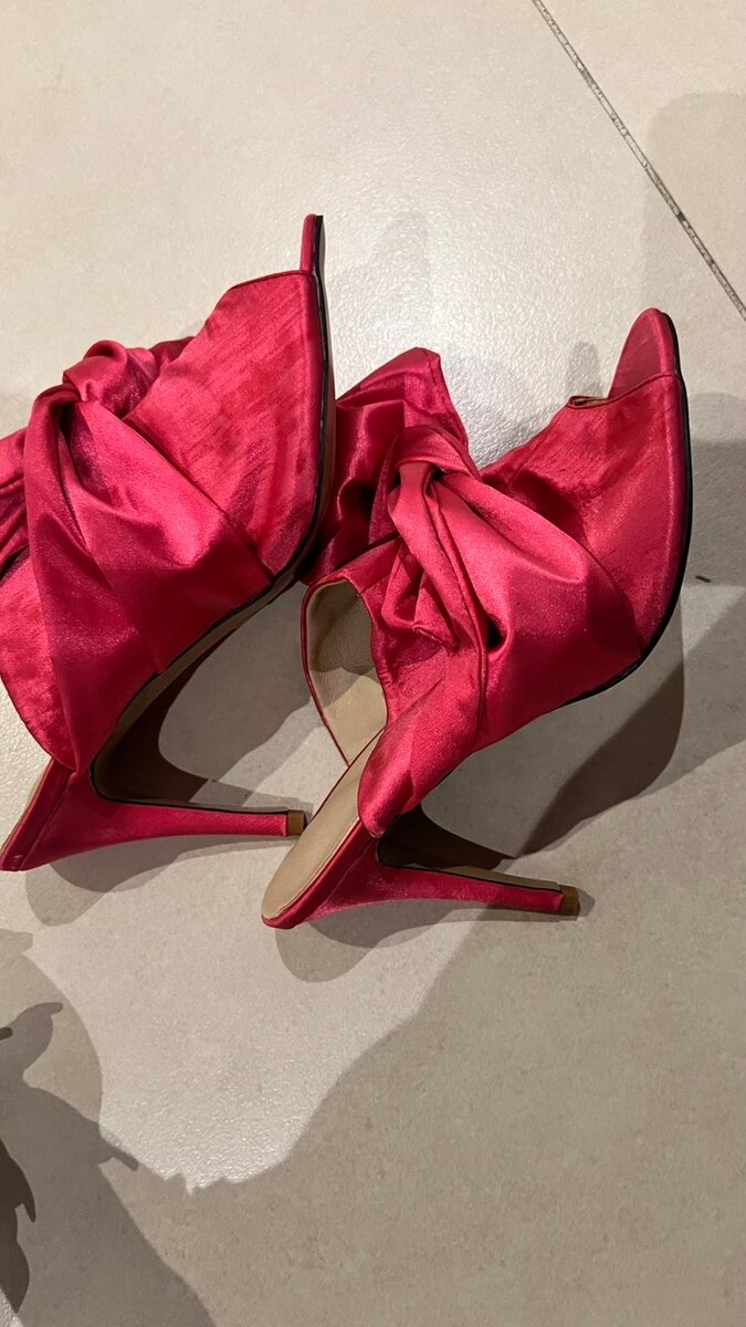 Sortez avec style avec ces élégantes mules en satin rouge. Dotées d'un nœud chic et d'un talon aiguille élégant, ces chaussures sont parfaites pour toute occasion spéciale ou soirée. Améliorez votre garde-robe avec une touche de sophistication et de glamour. Idéal pour les personnes avant-gardistes qui cherchent à faire une déclaration. Confortables et à la mode, ces mules sont un ajout indispensable.
