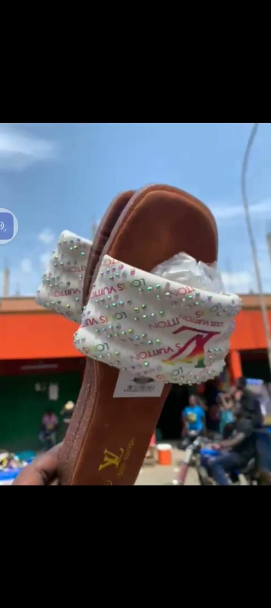 Découvrez ces élégantes mules Louis Vuitton pour femme, parfaite pour une tenue chic et confortable. Fabriquées avec une semelle en cuir marron et des bandes blanches ornées de motifs et strass, ces chaussures ajoutent une touche de luxe à votre style.