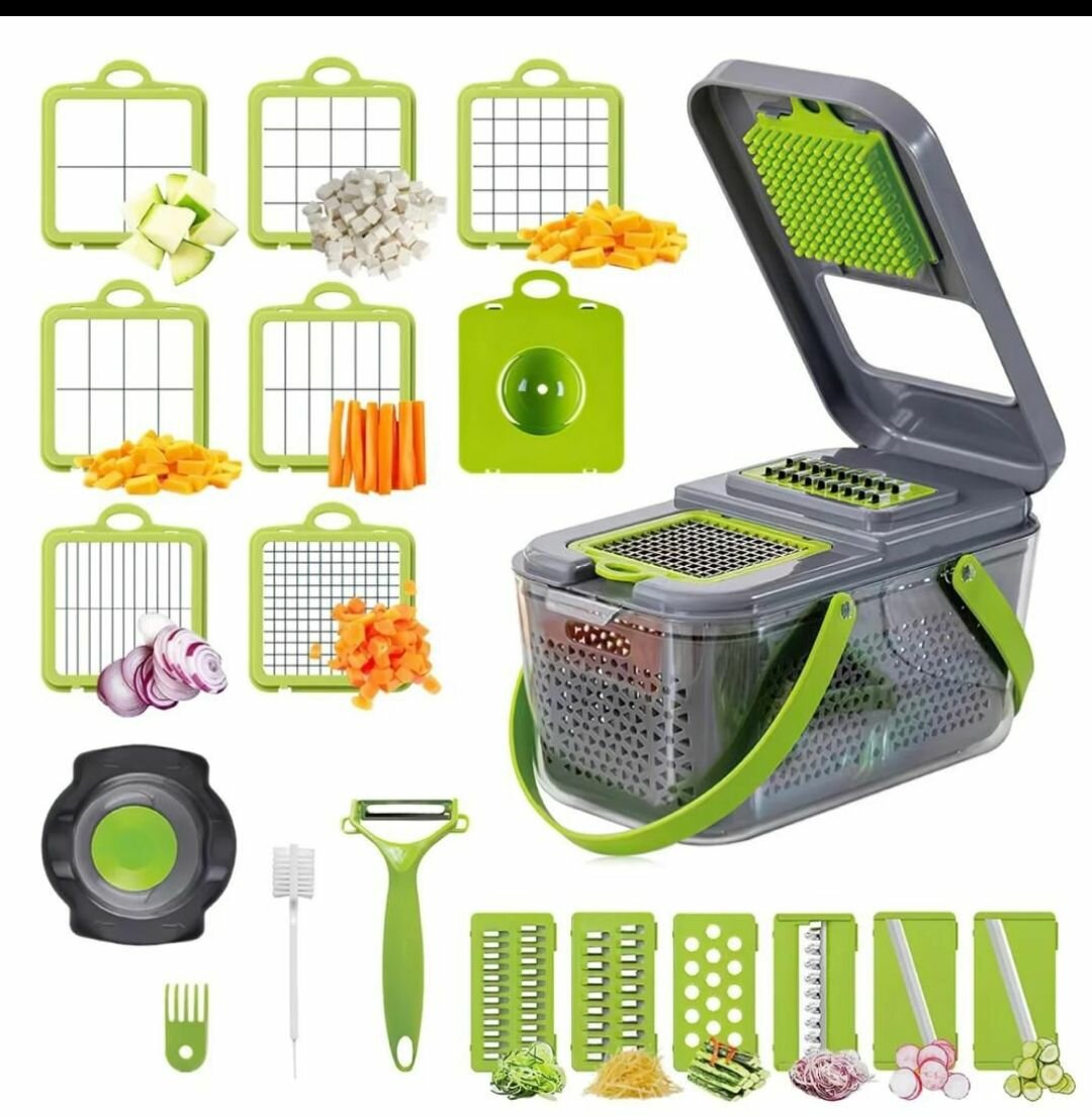 18 in 1 kitchen essential Kit. Chop,slice,shred,dice, grate all in 1.