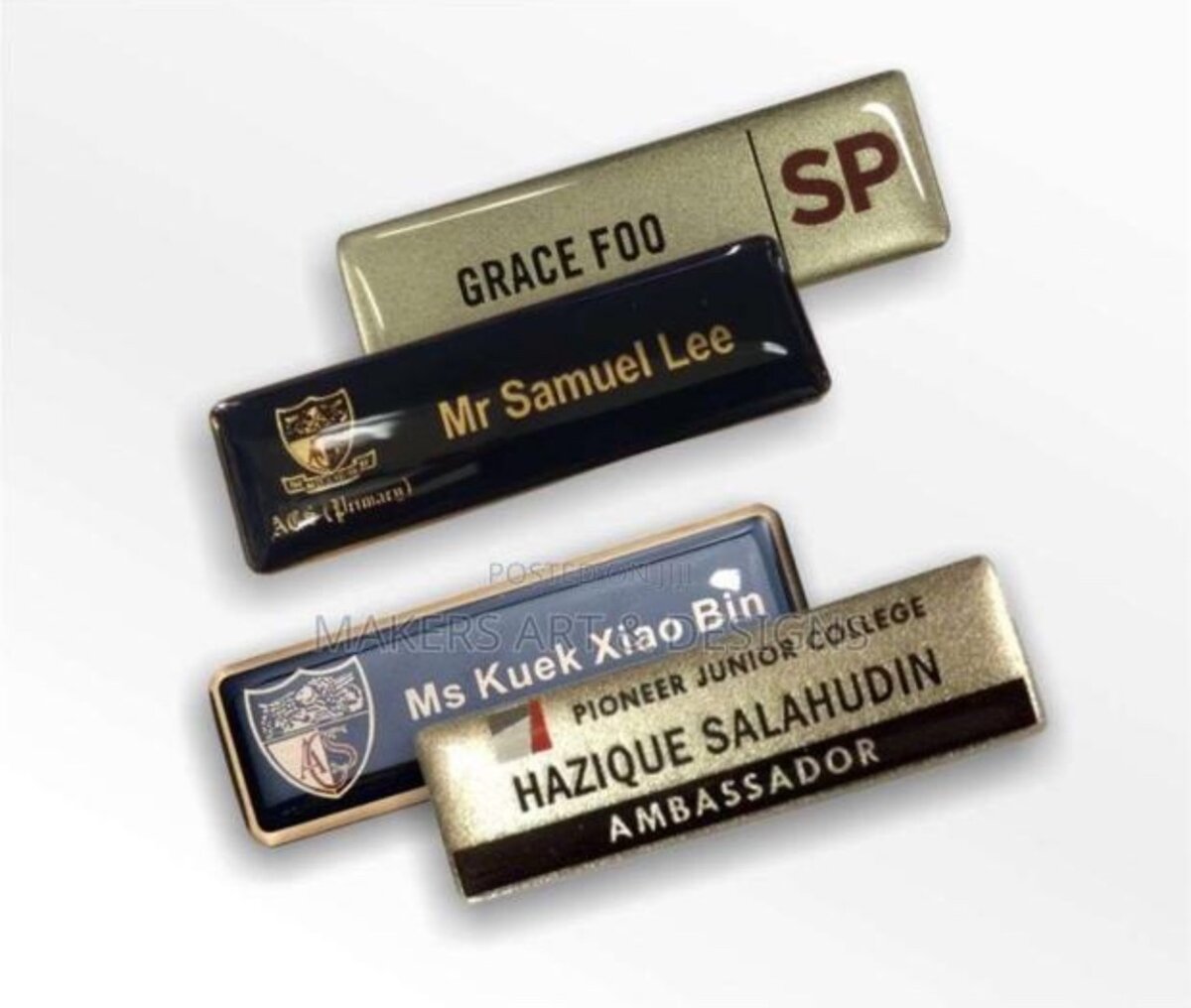 Name tags, both doming type and card type