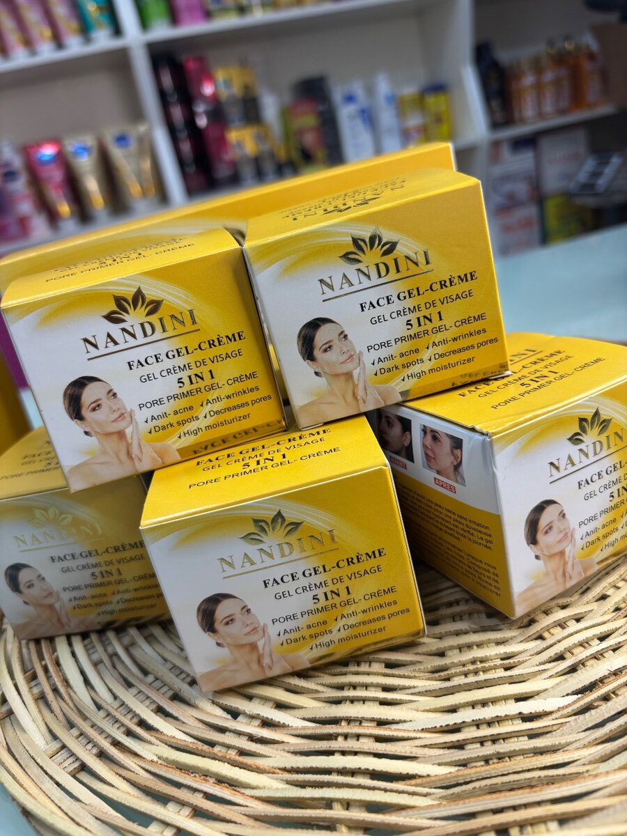 𝟱 𝗲𝗻 𝟭, 𝗼𝘂𝗶 𝗼𝘂𝗶 𝟱 𝗲𝗻 𝟭 La crème de visage qui fais un effet peeling, NANDINI la nouvelle star est : Anti-acné Anti-rides Taches brunes Réduit les pores Hydratant intense
