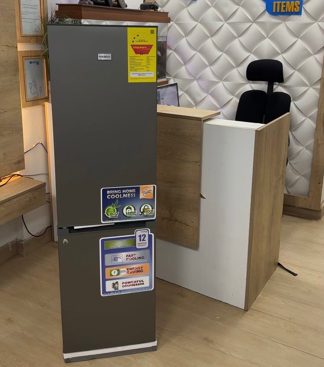 Nasco-170ltr-bottom-freezer-refrigerator-nasd2-23-sk manual defrost; lock & key; light; bottom mount freezer; 170 ltrs; grey; 3 star energy efficient; glass shelves. AVAILABLE AS SEEN HERE!!!.